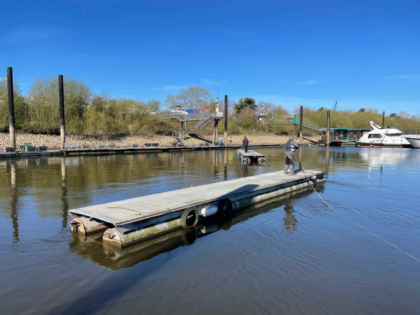 Anfang April haben wir an der Elbe eine neue Steganlage bekommen. Seitdem wurde fleißig daran gearbeitet diese für die Saison aufzubauen. Auch die alte Steganlage wurde erfolgreich überführt. Nachfolgend einige Impressionen. Vielen Dank an alle Helfer!